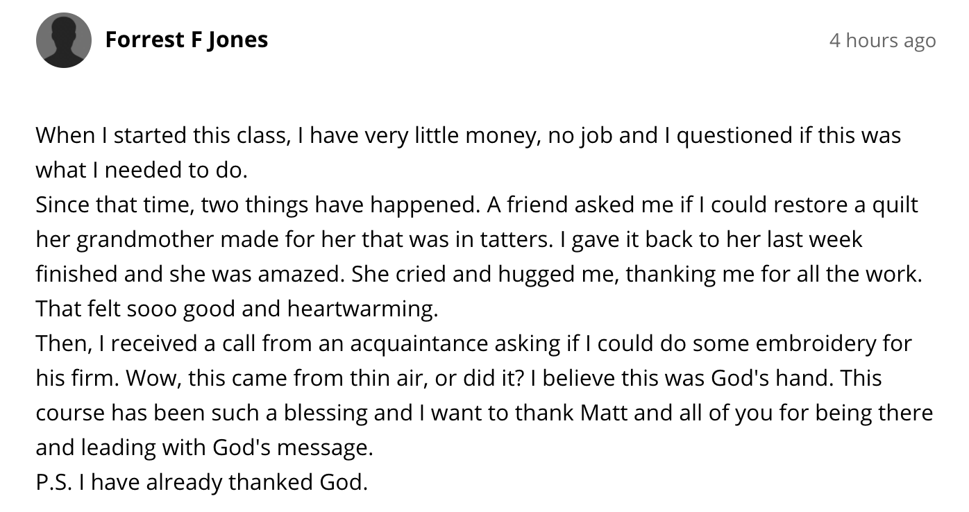 At the end of the Masterclass, Matt will offer an invitation to be a part of the Created to Thrive Experience Course Program. This program is only open to the public once a year and this is one of those opportunities. This is completely optional for those who are ready to take the next step on their journey.
